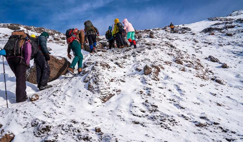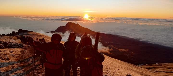 Your guide will wake you around 23:30 for tea and biscuits. You will then begin your summit attempt. The route heads northwest and you will ascend over stone scree. During the ascent, many hikers feel that this is the most mentally and physically challenging part of the climb. In about 6 hours, you will reach Stella Point (5685m), located on the crater rim.