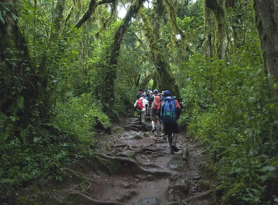 The descent is down the Marangu Route on the south side of the mountain, so climbers see the mountain from many view points. The drive to the trailhead takes 4-5 hours through many villages and coffee plantations.